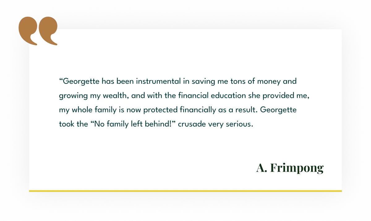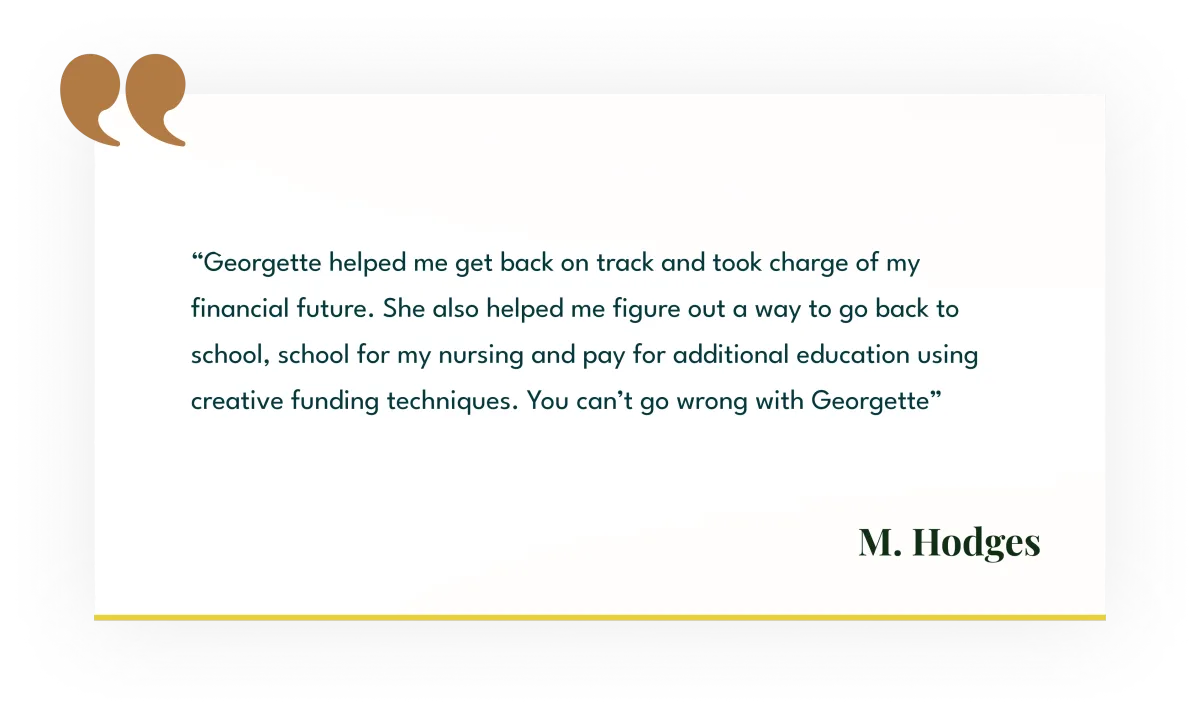 What sets Georgette apart is her dedication to client success. She took the time to thoroughly understand their financial situation and worked closely with me to craft my profession as well.
